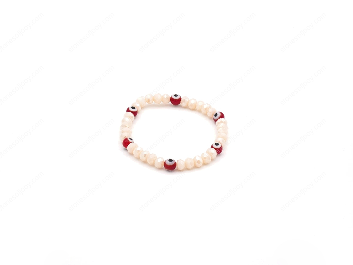 A touch of beauty and protection represents this beautiful ivory crystal beads bracelet. It features 6 red evil eye beads known for caring and protecting over the person that wears it.
